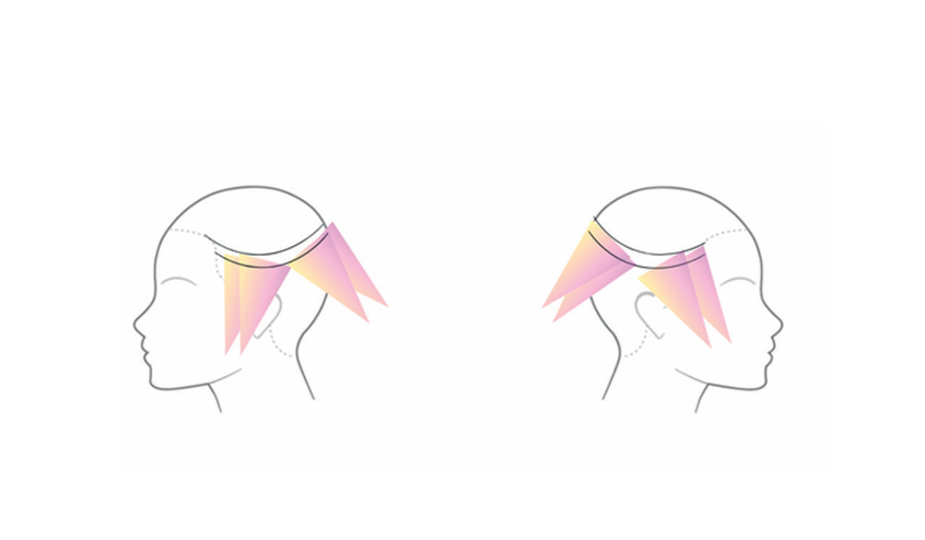 Créez une section en demi-lune d’une tempe à l’autre pour une application ciblée.